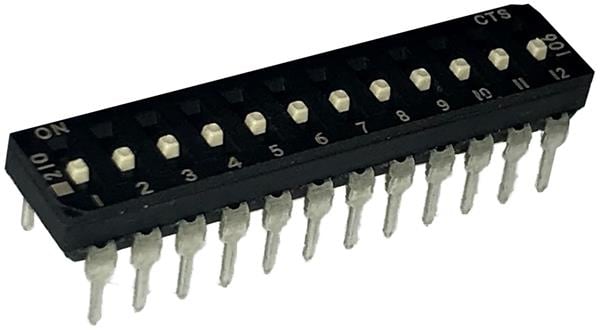 CTS Electronic Components 210-12MSFD ສະຫນັບ DIP THROUGH HOLE, DIP SWITCH ກະທົບທາງທາງທາງ, 12-ຂາ, ຕົວກະທົບລະດັບກາງ, ການປິດທ້າຍລຸ່ມ, ອອບ, ແບບຂອງຂອງຕົວຈົບຕົວຕົວ, ກະປ່ອງທູບ