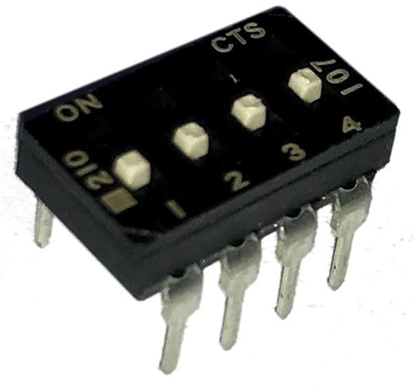 CTS Electronic Components 210-4MSFD ສະຫນັບ DIP ຜ່ານຮູ, DIP SWITCH ກະທົບທາງທາງທາງ, 4-ຂາ, ຕົວກະທົບລະດັບກາງ, ການປິດທ້າຍ, ຮູບແບບຂາຍຕົວຕົວ, ບ່ອນຫຼັງ