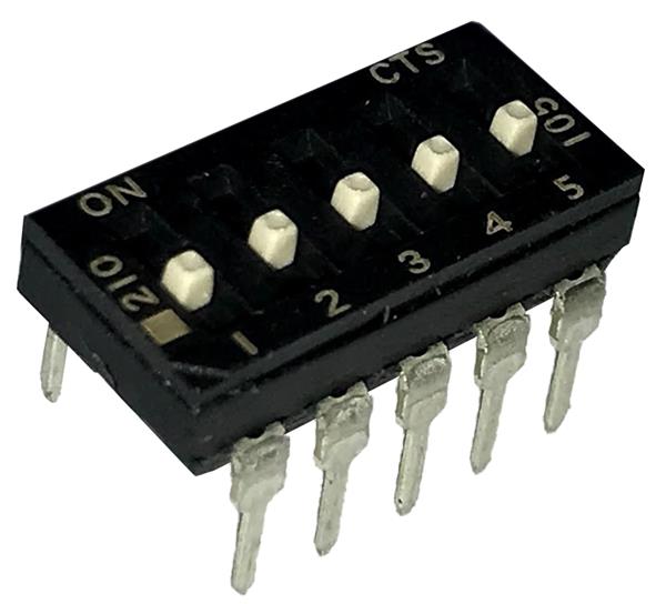 CTS Electronic Components 210-5ESFD DIP Switches THROUGH HOLE, GOLD FLASH DIP SWITCH, 5-POLE, EXTENDED ACTUATOR, BOTTOM SEAL, OFF, STRAIGHT TERMINAL FORM, TUBE PACK