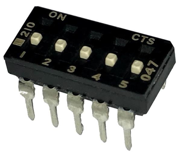 CTS Electronic Components 210-5MSF DIP Switches THROUGH HOLE, GOLD FLASH DIP SWITCH, 5-POLE, MEDIUM ACTUATOR, BOTTOM SEAL, OFF, TUBE PACK
