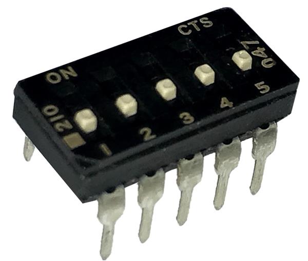 CTS Electronic Components 210-5MSFD ສະຫນັບ DIP ຜ່ານຮູ, DIP SWITCH ກະທົບທາງທາງທາງ, 5-ຂາ, ຕົວກະທົບລະດັບກາງ, ການປິດທາງລຸ່ມ, ອອບ, ແບບຂອງຂອງຕົວຈົບຕົວຕົວ, ກະປ່ອງທູບ