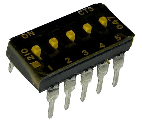 CTS Electronic Components 210-5MSTD DIP Switches THROUGH HOLE, GOLD FLASH DIP SWITCH, 5-POLE, MEDIUM ACTUATOR, BOTTOM SEAL, TAPE SEAL, STRAIGHT TERMINAL FORM, TUBE PACK