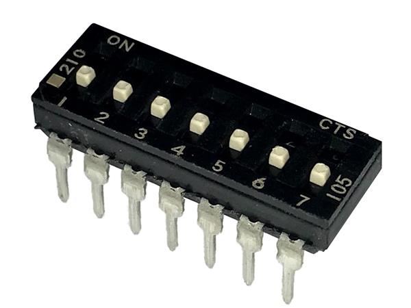 CTS Electronic Components 210-7MSF ສະລັບ DIP ຜ່ານຮູ, DIP SWITCH ກະທົບທາງທາງທາງ, 7-ຂາ, ຕົວກະທົບລະດັບກາງ, ການປິດທ້າຍ, ປະກອບໃນທູບ