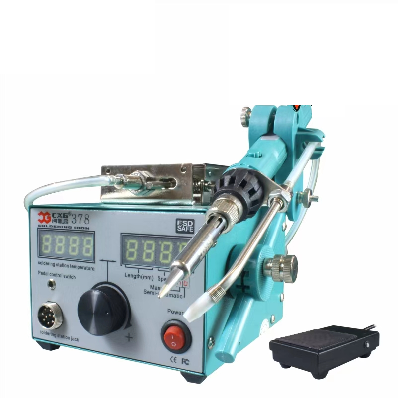 The CXG 378 automatic tin feeding soldering station is convenient for continuous soldering work at one time. It can adjust the speed of tin delivery, tin delivery length, can achieve semi-automatic soldering effect according to different soldering needs, and high work efficiency.