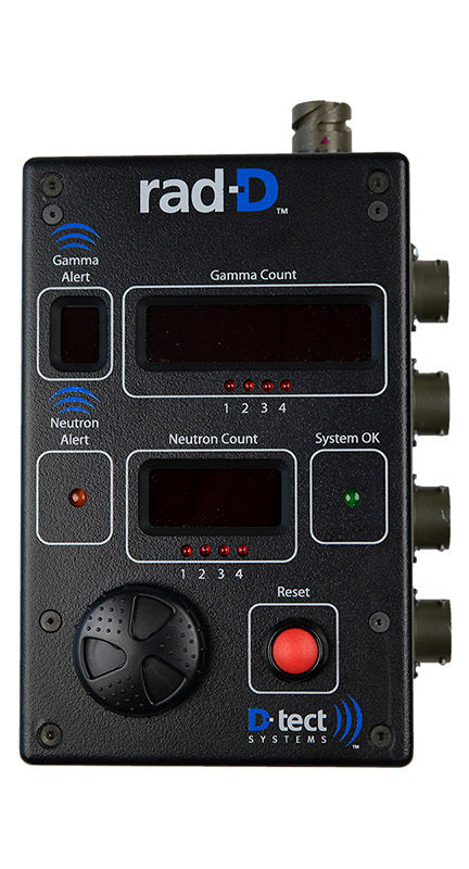 The Rad-D, a part of the D-Series, is a fixed-position radiation detector that is used to monitor doorways, driveways, and loading docks. A versatile device, it senses gamma and neutron detection in under a second and can trigger active responses such as halting conveyor belts or lowering a blockade.