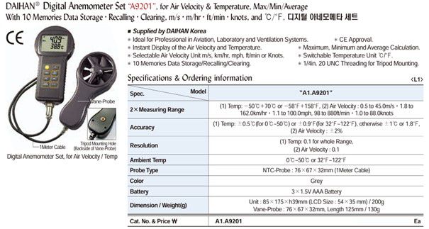 (2) Air Velocity : 0.5 to 45.0m/sㆍ1.8 to 162.0km/hrㆍ1.1 to 100.0mph, 98 to 880ft/minㆍ1.0 to 88.0knots