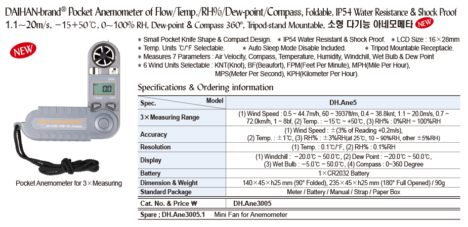 DaiHan DH.Ane3005 Pocket Anemometer | EMIN.COM.LA