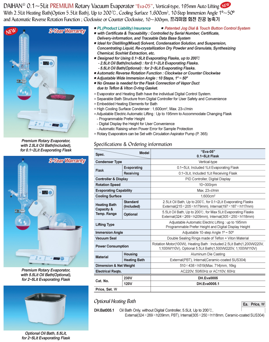 Power Consumption: Rotation Motor(100W), Heating Bath: Included 2.5Lit Bath(1,200W/220V, 1,100W/110V), Optional 5.5Lit Bath(1,500W/220V, 1,100W/110V)
