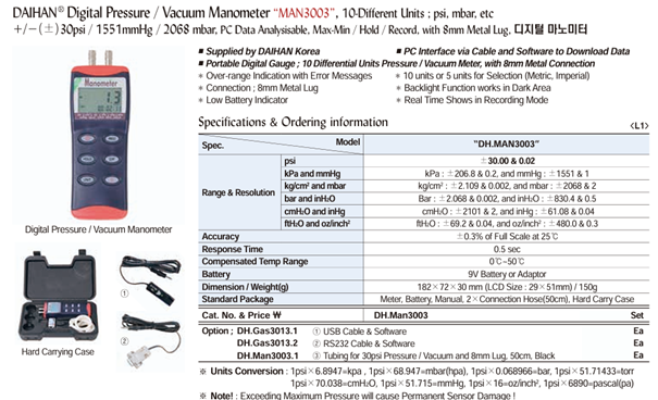 Standard Package: Meter. Battery. Manual. 2×Connection Hose(50cm). Hard Carry Case