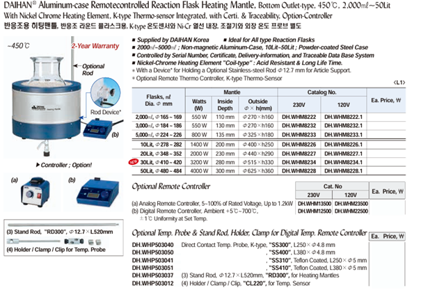 * Optional Remote Thermo Controller, K-type Thermo-Sensor