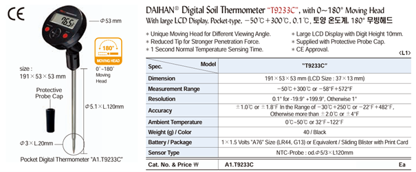 DaiHan T9233C ເຄື່ອງວັດອຸນຫະພູມດິນດິຈິຕອນ | EMIN.COM.LA