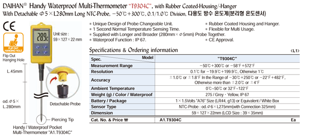 DaiHan T9304C Handy Waterproof Multi-Thermometer | EMIN.COM.LA