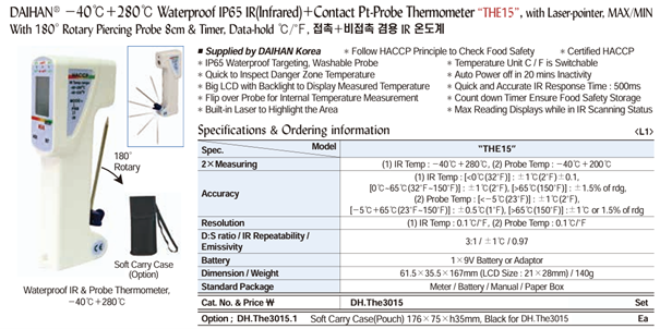 (1) IR Temp : [<0℃(32℉)] : ±1℃(2℉)±0.1; [0℃~65℃(32℉~150℉)] : ±1℃(2℉). [>65℃(150℉)] : ±1.5% of rdg