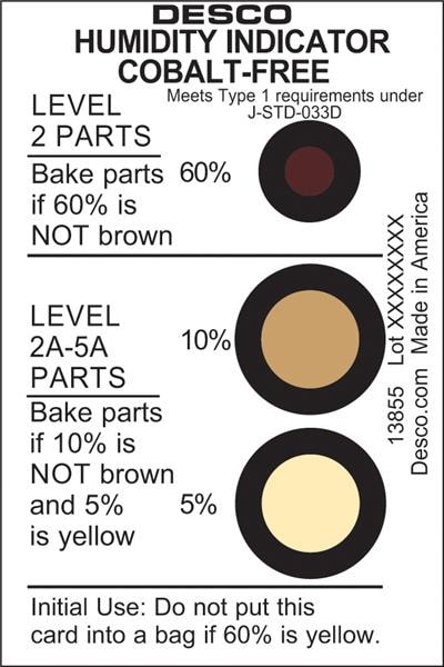 Desco 13855 ບັດບອກສະຫຼຸບຄວາມຊື່ນ HUMIDITY INDICATOR CARD, COBALT-FREE, 5-10-60%, 125/CAN | EMIN.COM.LA