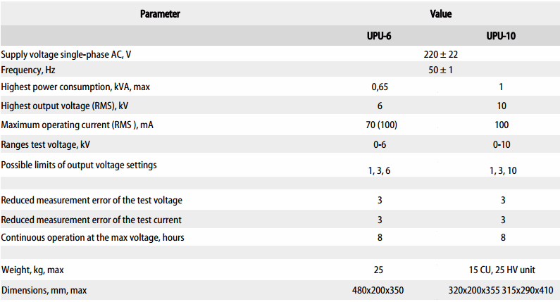 Dimensions of high voltage unit, mm 315x290x510