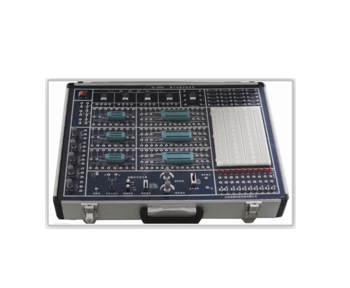 The circuit experiment box motherboard is made of 2 mm thick printed circuit board, front printed with components graphic symbols and relevant attachment, opposite is printed wire, and welding related components, the motherboard set with several high reliable multi-function chips socket (20 P, 40 P), several high reliable silver coating long copper tube, for insert resistor capacitor, diode and the transistor, etc, and with the universal bread board for insert all kinds of components. Also has more than 200 high reliable locking type turn fold socket (and internal connect with integration piece socket, silver coating long copper tube and fixed devices), when as an experimental connection, test points, experimental wiring, just take lock plugs wire to connect with each other. The experiment box adopts high-strength aluminum alloy, appearance is elegant.