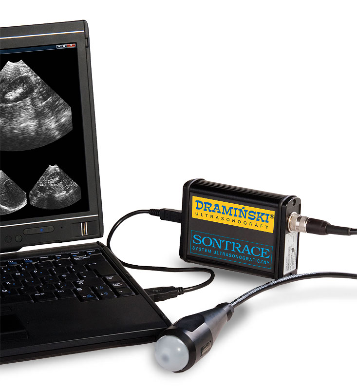 DRAMIŃSKI SonTrace system has been designed for budding veterinary practitioners, who need a portable and economic ultrasound scanner. SonTrace is a solution that allows for building one’s own ultrasound scanner based on his or her own notebook or PC. The system can be carried in a laptop bag. It is powered by a computer USB2.0 At the same time, the ultrasound scanner may be used in the office as a stationary device.