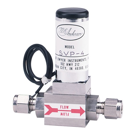 Dwyer SVP-3 ວາວເວີດໂຊເລນອອຍ, 0-24 Vdc, ການຄວບຄຸມການເລື່ອນຜ່ານສໍາລັບແກັດ/ນ້ຳ, ປິດ NC (0.055 gal/min, 45.6 SCFH, 1/4 in, Compression Fitting, 0.055 in)