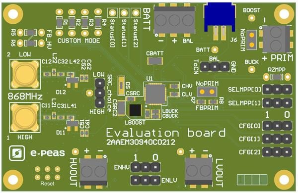 e-peas EVK30940-868 ບົດປະເມີນການເກັບພະລັງງານສໍາລັບວິທະຍຸ 868MHz (AEM30940) ພິເສດການຈັດການພະລັງງານ 2AAEM30940C021 | EMIN.COM.LA