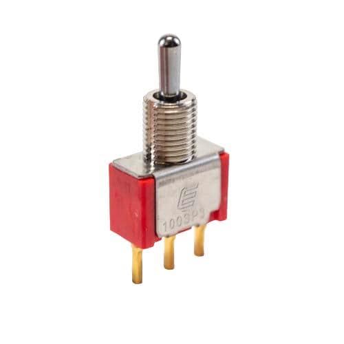 E-Switch 100SP3T2B3M2RE ສະຫນັບສະຫນູນ Toggle TOGGLE, 0.4VA 20VAC/VDC, SPDT On-Off-On, Panel Mount PC Pin | EMIN.COM.LA