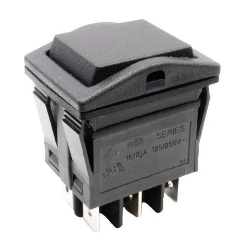 E-Switch RB546A1100 ສະວິດໂຍກ ໂຍກ, 16A, DPDT, (On)-Off-(On), ຕິດແຜງ, ແບບສຽບລັອກ | EMIN.COM.LA