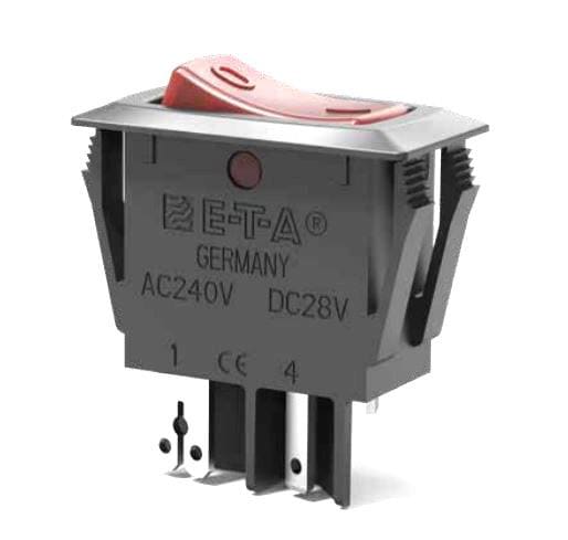 E-T-A Circuit Breakers 1410-F110-P1F1-W14QE2-1A Thermal Overcurrent Min Ord Qty 50. Miniaturised single pole rocker switch/thermal circuit breaker combining ON/OFF switching and extremely fast overload performance in a single component (S-type TO CBE to EN 60934/IEC 934). Under overload conditions an internal neon (f