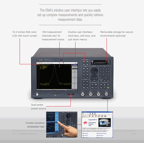 With a combination of speed, accuracy, and advanced functionality, the ENA provides powerful general-purpose network analysis. The ENA offers extensive measurement capabilities, analysis features, and post-data processing capabilities for effective design characterization.