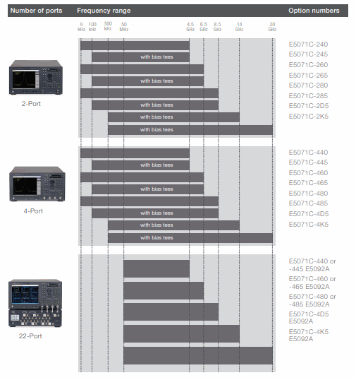 • 2 or 4 ports, plus flexible multiport configuration of up to 22 ports with E5092A