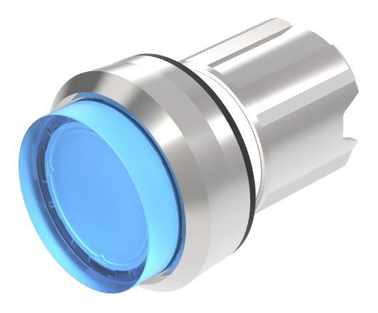 EAO 45-2231.22J0.000 Switch Actuators Illuminated pushbutton actuator blue transparent lens raised above bezel momentary front/housing metal