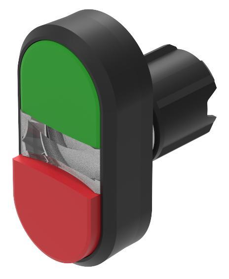 EAO 45-2J31.15T0.000 ອຸປະກອນກົດປຸ່ມຄູ່ ປຸ່ມກົດຄູ່ສີຂຽວ-ແດງ ມີເລນສ໌ລະດັບ ມີ/ສູງກວ່າແຫຼວດ້ານໜ້າ ປຸ່ມກົດຊົ່ວຄາວ ຕົວປຸ່ມດ້ານໜ້າ/ຕົວຄອງພາສຕິກ