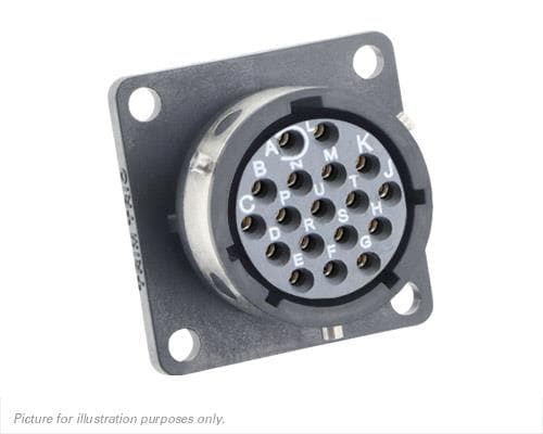 Eaton Souriau-Sunbank UTGX014D18S ຮັບສະຫຼຸບ Receptacles Square flange receptacle, ບໍ່ມີ backshell, ມີ 18 ຕິດຕໍ່ PCB ຍິງ, IP68/69K ໃນສະພາບບໍ່ໄດ້ຕ້ອງການ