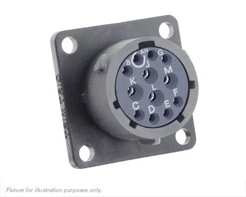 Eaton Souriau-Sunbank UTSX014E12SW ຮັບສິນສ່ວນ Receptacles Square flange receptacle, ບໍ່ມີ backshell, ມີ 12 ຕໍ່ຕົວຍິງ solder contacts, IP68/69K ໃນສະພາບ unmated, keying W