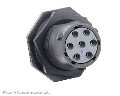 Eaton Souriau-Sunbank UTSX714D7S32 ຮັບສະຕິເຄື່ອງ Jam nut receptacle ແລະກຣິບຢືນຢັນ, ບໍ່ມີຫົວຫອງດ້ານຫຼັງ, ມີ 7 ຕິດຕໍ່ PCB ຍິງ, IP68/69K ໃນສະພາບບໍ່ໄດ້ຕ້ອງການ