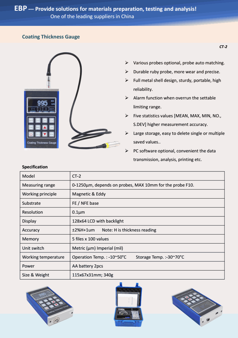 EBP CT-2 ເຄື່ອງວັດແທກຄວາມຫນາຂອງການເຄືອບ (0-1250μm; ±2%H+1um) | EMIN.COM.LA
