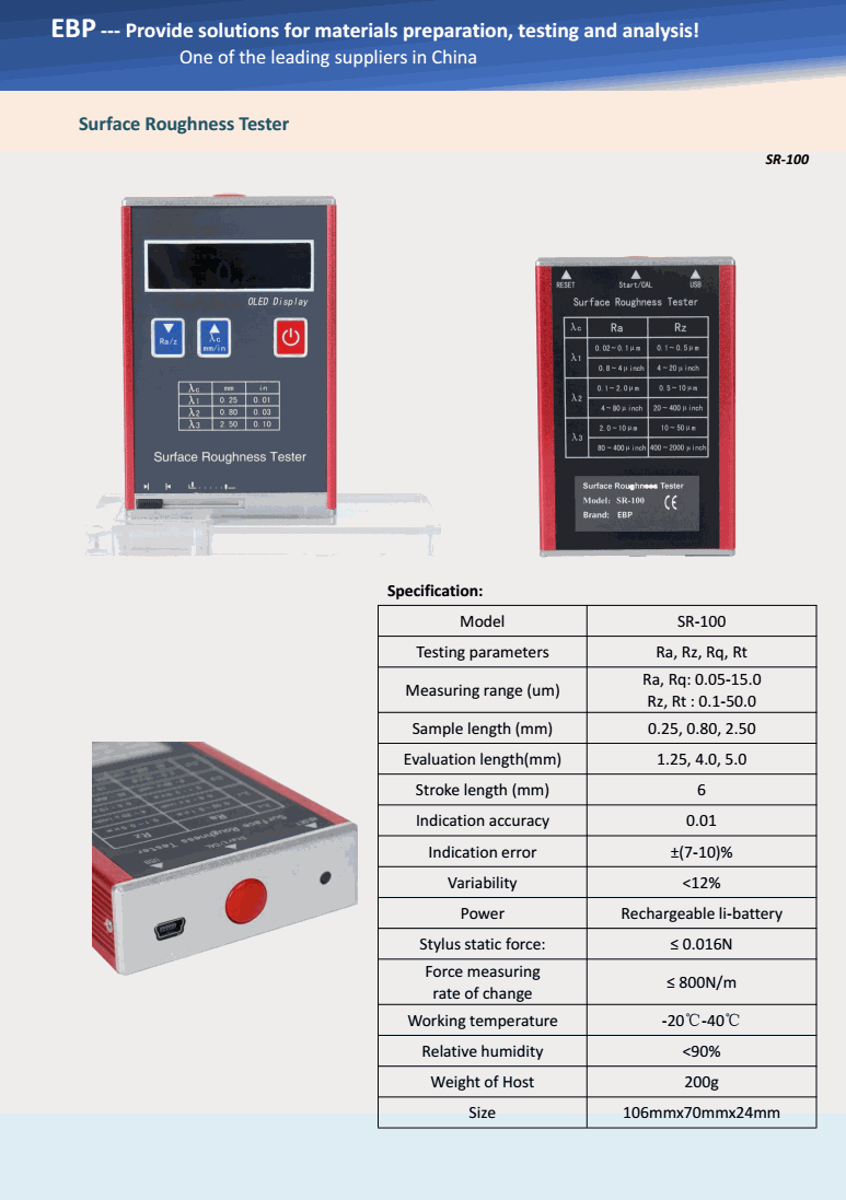 EBP SR-100 ເຄື່ອງທົດສອບຄວາມຫຍາບຂອງພື້ນຜິວ | EMIN.COM.LA