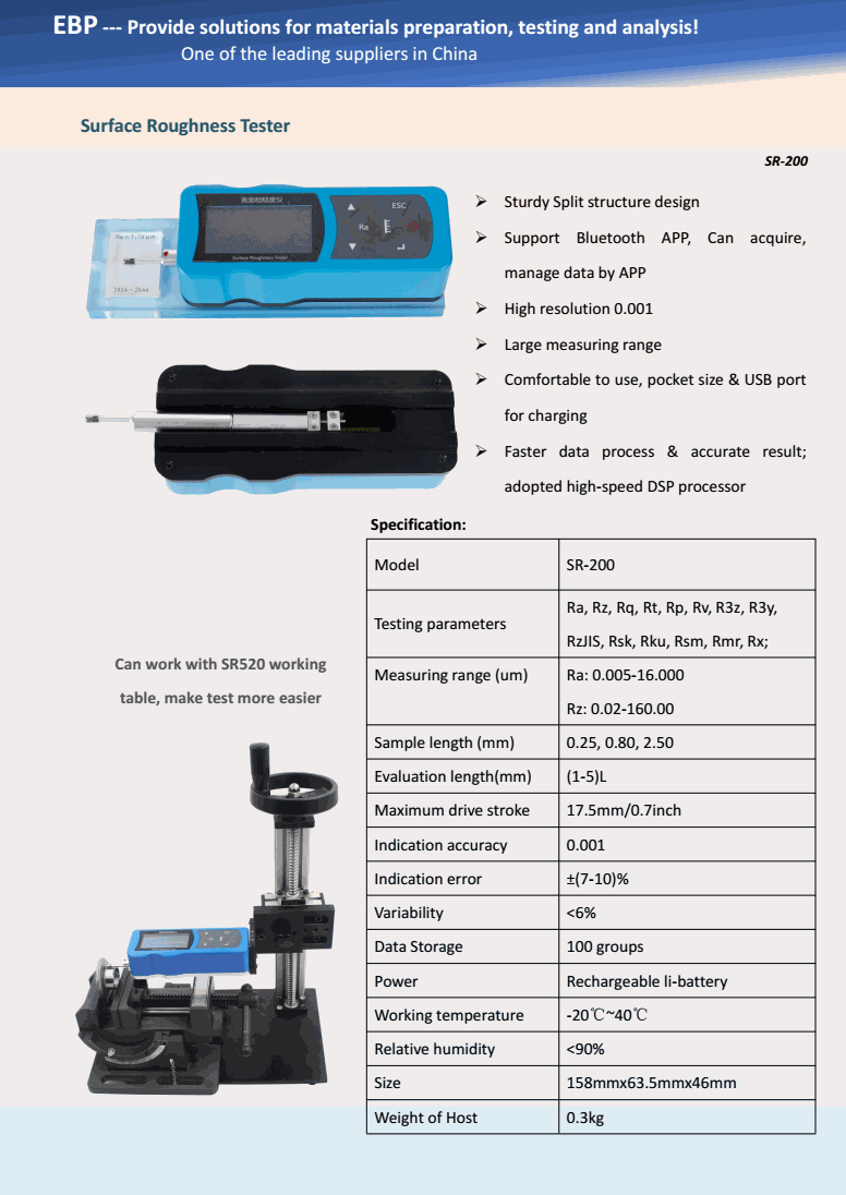 EBP SR-200 ເຄື່ອງທົດສອບຄວາມຫຍາບຂອງພື້ນຜິວ | EMIN.COM.LA