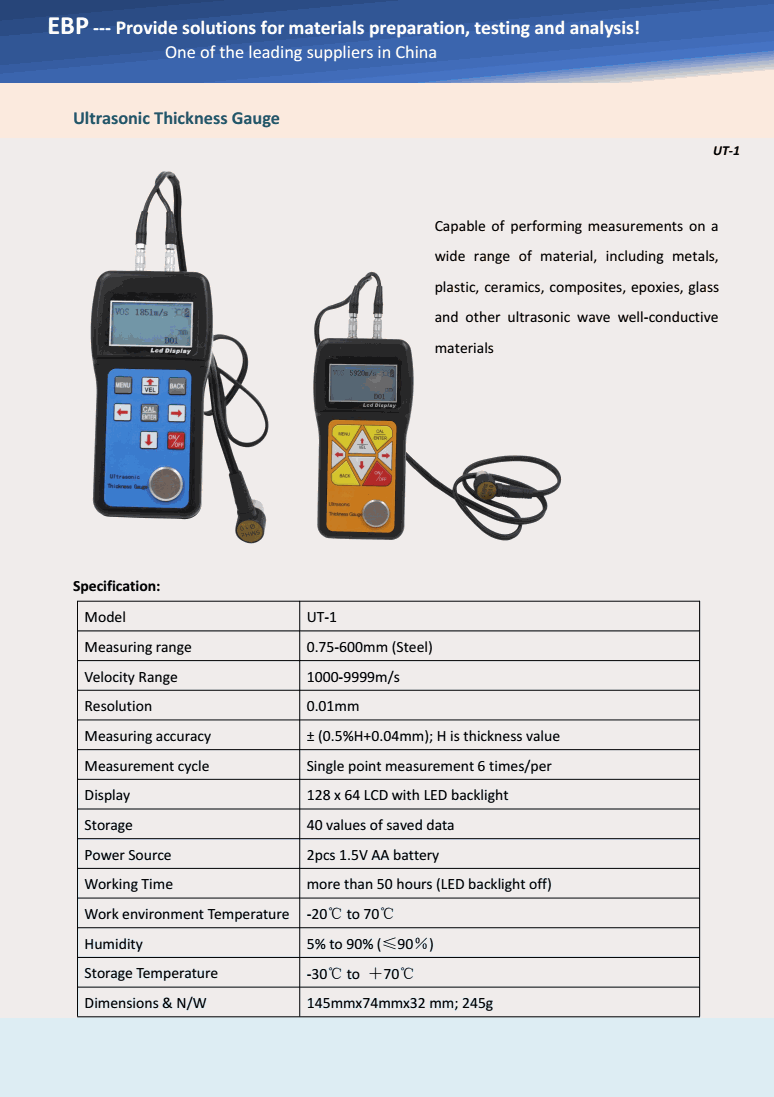 EBP UT-1 ເຄື່ອງວັດແທກຄວາມຫນາ Ultrasonic (0.75-600mm) | EMIN.COM.LA