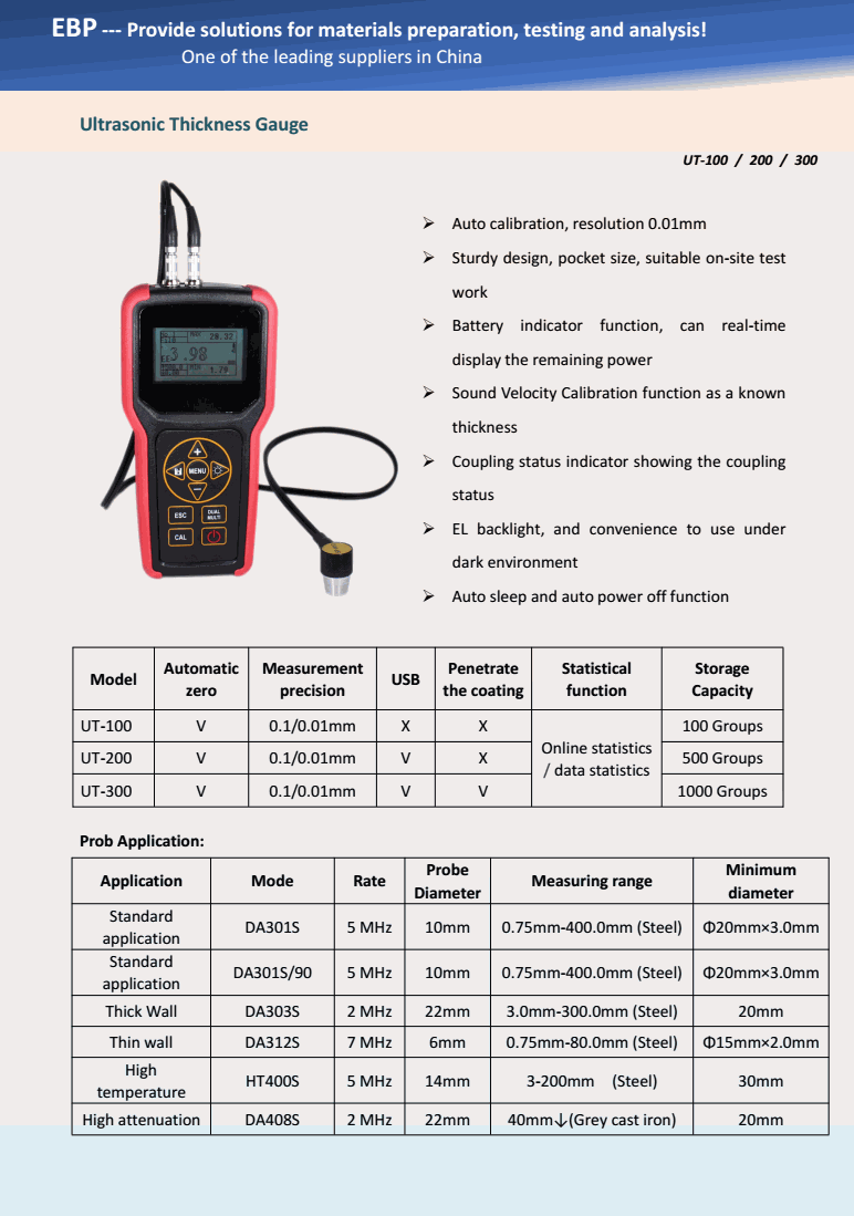 EBP UT-100 ເຄື່ອງວັດແທກຄວາມຫນາ Ultrasonic | EMIN.COM.LA