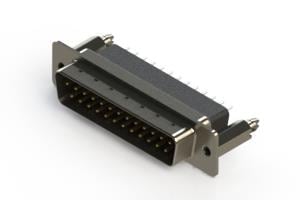 EDAC 627-025-621-556 Standard Card Edge Connectors 627 Series vertical D-Sub plug connector with 25 pin type contacts that have 30 " gold plating. The contacts have .125" (3.18mm) to .165" (4.20mm) long P.C.B tails and the insulator is high temp' rated.The body is high profile metal, the flange is mo