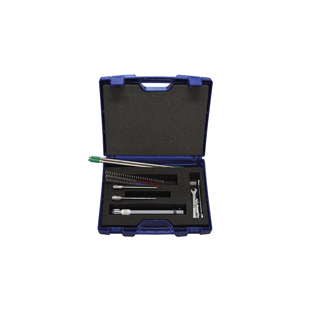 The instrument is supplied with a number of cones and compression springs. The combination of a cone and a compression spring is selected based on the expected penetration resistance. If the expected penetration resistance is high, a cone with a small surface is selected and a compression spring with a large maximum force and vice versa.