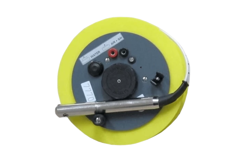 The water level meter is part of the standard equipment for measurement of groundwater level. It is provided with a stainless steel probe with a diameter of only 14 millimetres, which is connected to a measuring tape with centimetre graduation. The probe gives clear light and sound signals when the probe comes into contact with a conductive liquid. The user can lift the cable slightly to stop the signal. The depth can then be easily read via the measuring tape. The product is accurate to approximately centimeter.