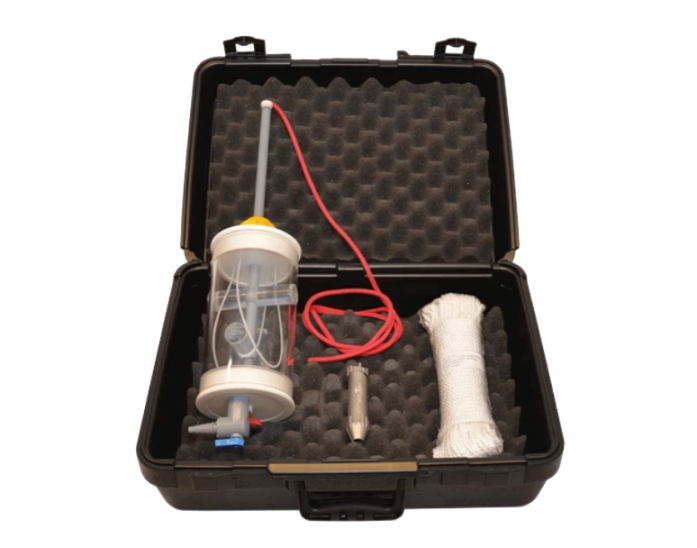 This set is complete with drop-weight, 30 metres polyester rope and transport case. Last but not least, you can attach the CTD Diver to also measure temperature, vertical water depth and, if required, conductivity.