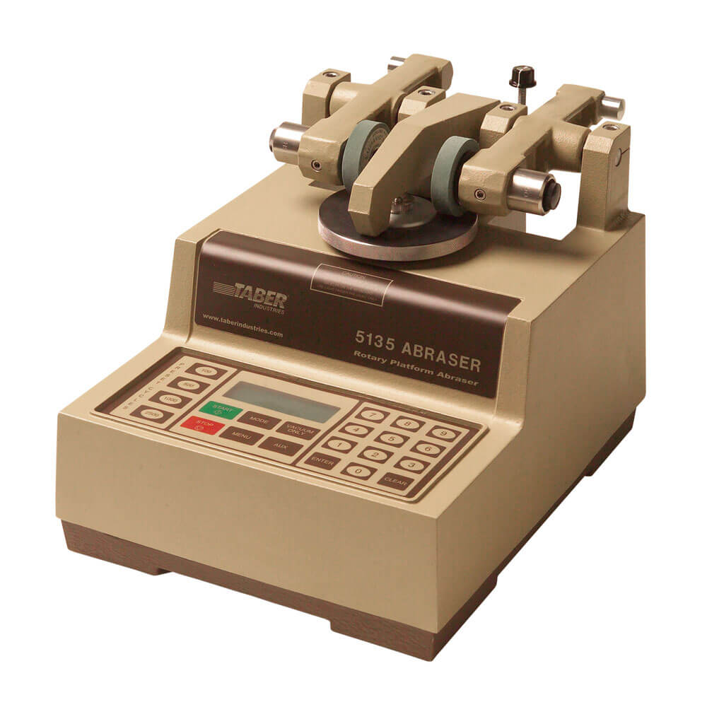 Packing List: Elcometer Taber® Abraser, auxiliary weights - 1 x 500g (17.64oz) load and 1 x 1000g (35.27oz) load, specimen holder 109.2mm (4.3”) O/D (E-100-125), holding down ring(E-100-101), 100 x refacing discs (S-11), Calibrase® Wheel set (CS-10), Calibrade® Wheel set (H-18), vacuum unit with suction hose, round brush, power leads (115V and 230V) and operating instructions