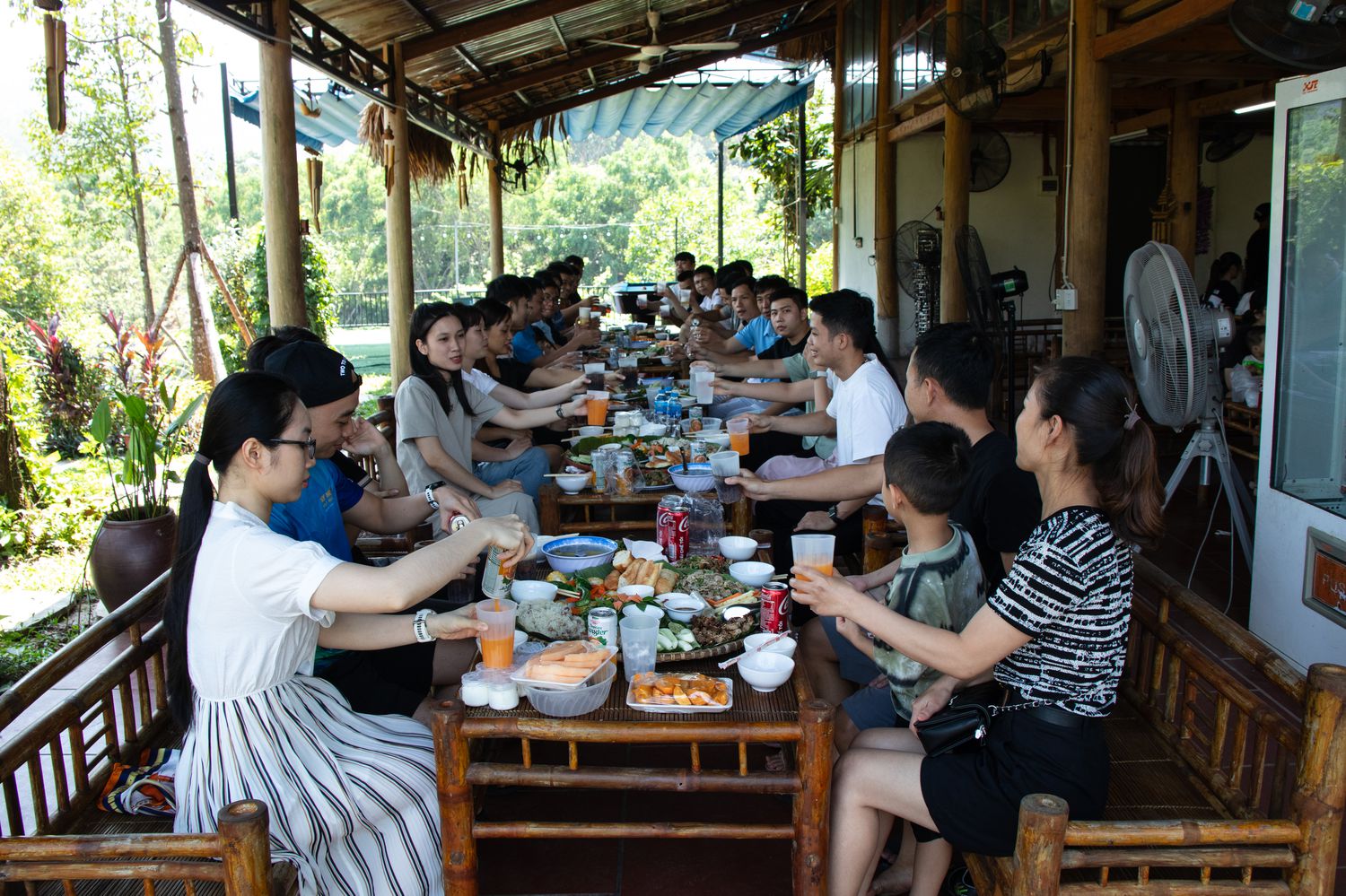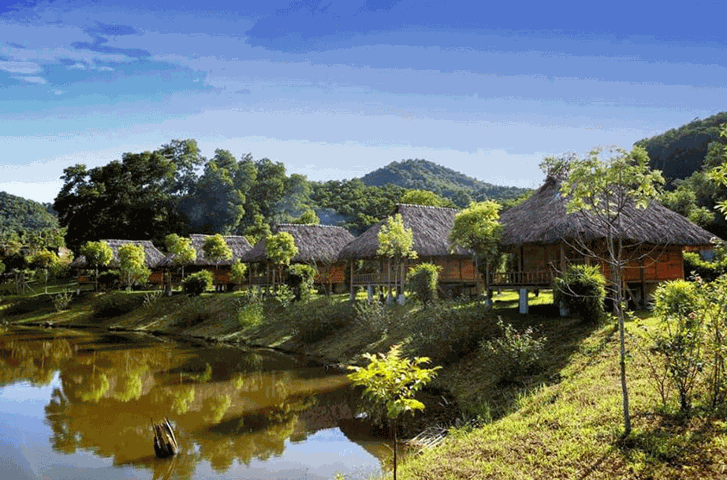 Departure time starts at 11:00 a.m. on October 5, 2024 at EMIN Hanoi and arrives at Ban Xoi valley at about 12:00 p.m. After resting, the whole group enjoyed an extremely delicious meal with specialties such as Muong lam rice, stir-fried baby veal, steamed veal, goat porridge, roasted wild boar, beef with wine sauce, wormwood leg, hill chicken. ,...