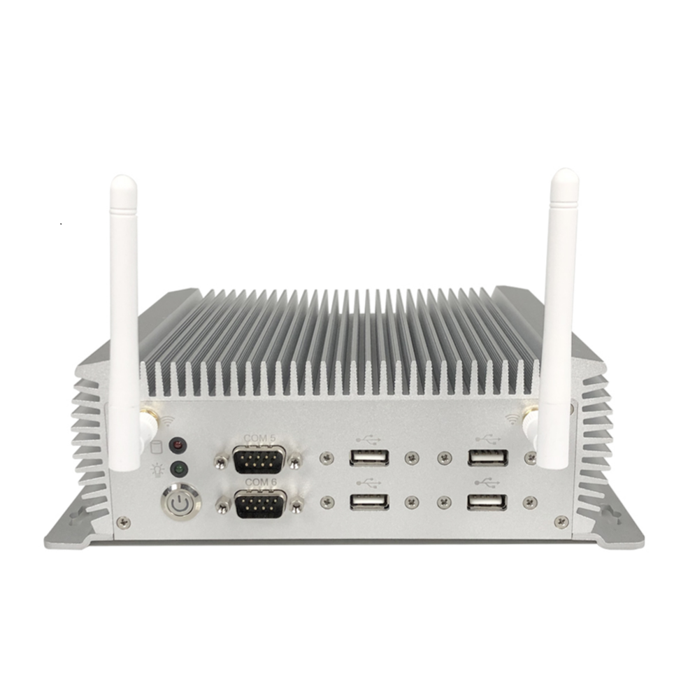 - Backside port: 2* WIFI, 1* DC IN, 4* USB3.0, 2* LED(red for power, green for hard disk), 1* HDMI, 1* VGA, 2* RJ45 LAN, 2* COM (can change to RS232/422/485 from BIOS), 1* GPIO, 1* 2Pin Phoenix terminal power supply input.