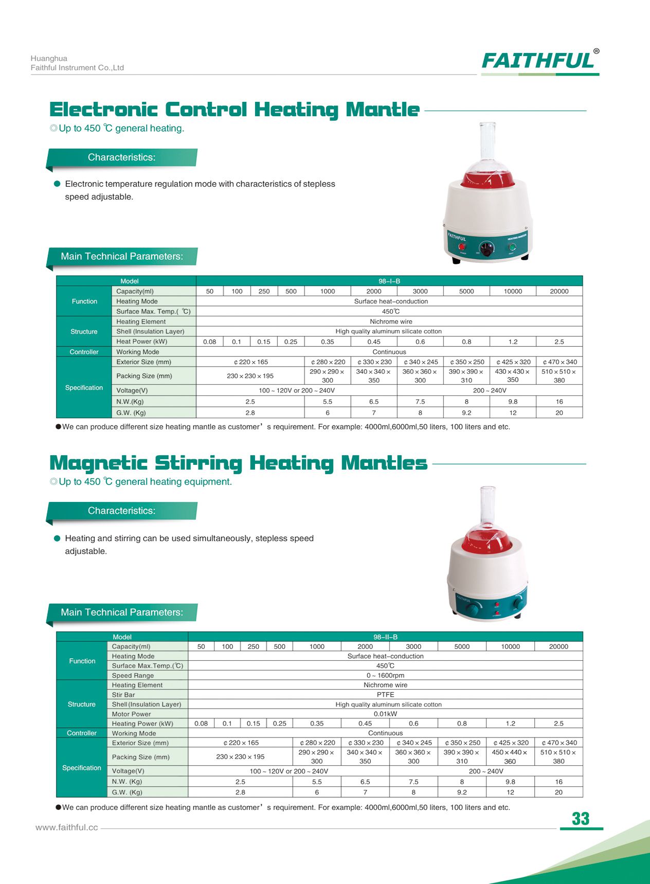 Faithful 98-II-B Magnetic Stirring Heating Mantle (2000ml; 450℃; 1600rpm; 0.45kW)