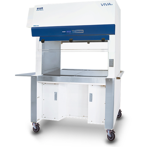 Dual access animal workstations aim to provide operator comfort and prevent the lab animals from being agitated during cage transfer. This equipment has a legroom on both sides to allow two operators to work while doing cage transfer comfortably. It also has an internal work zone is divided into two by an air curtain that allows transfer of animals from a "dirty" to a "clean" area.