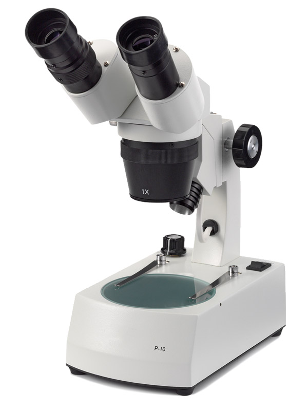 With 10W 12V incident and transmitted halogen illumination which can be used simultaneously.