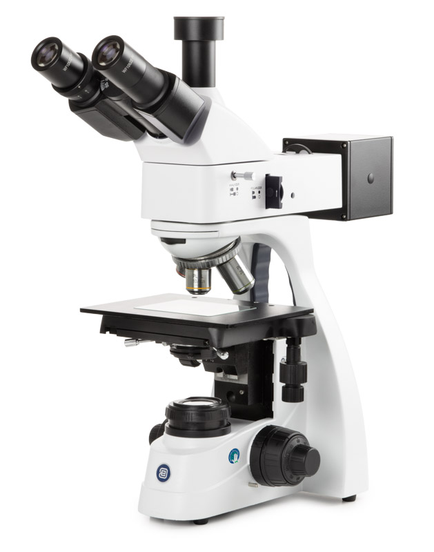 Reflected intensity adjustable 3 W NeoLED™ Köhler illumination with external power supply, push-pull type rotatable polarizer and push-pull analyzer, built-in condenser with iris diaphragm and field iris diaphragm. Integrated rotating filter disc with green, blue, yellow and white filters