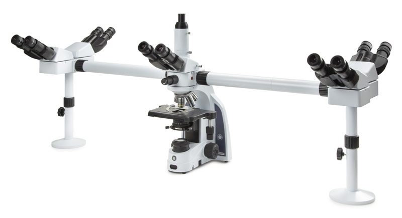 One trinocular head and four binocular head with 30°inclined Ø 30 mm tubes and SWF 10x/25 mm eyepieces